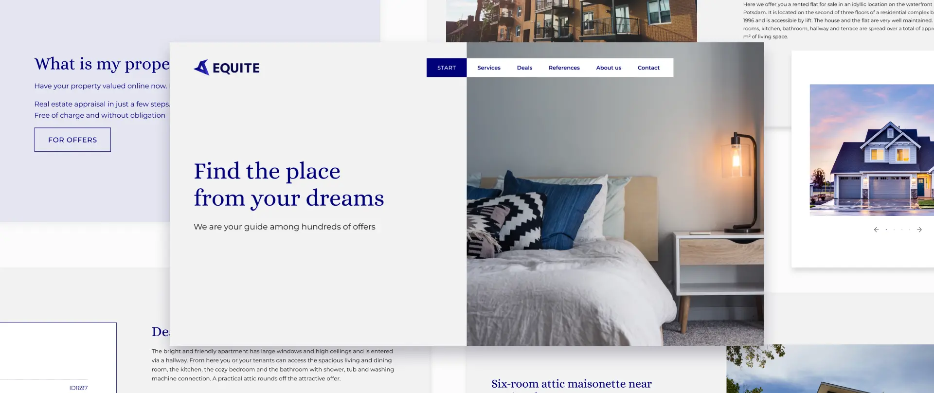 Equite positions itself as a one stop shop for finding your dream home. Our experts filled the website with comfy and stylish imagery and made the UI simple and straightforward to make the experience relaxed and inspire the feelings of comfort and security.