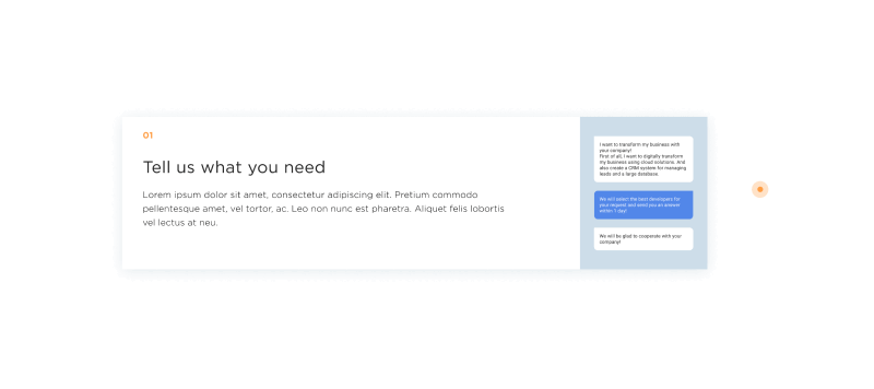 Clarity is the name of the game with complex services. We strived to make the complex simple with step-by-step straightforward explanations of the outstaffing services that uses illustrations to help users intuitively understand the process without having to read through each word.