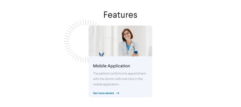 We’ve made the features showcase interactive. When the visitor hovers their mouse over the card, it changes to provide more details on the feature that piqued their interest.