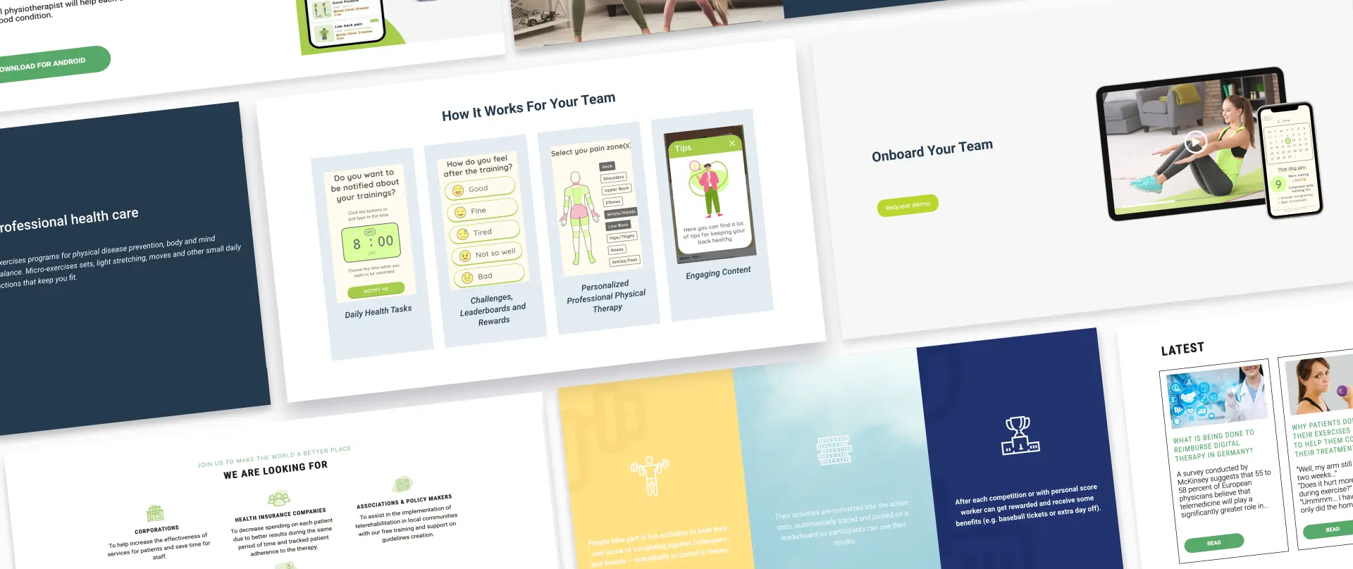 Corporate prospects are served another landing page that is more oriented on data and organizational benefits, such as reduced number of sick days due to improved employee health.